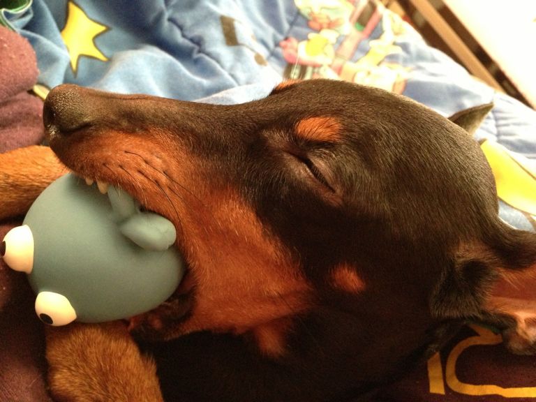 オモチャの頭噛み切りやがった