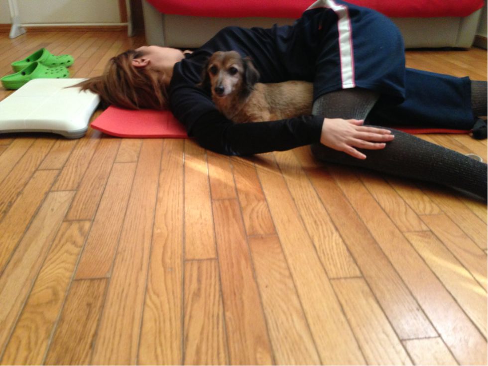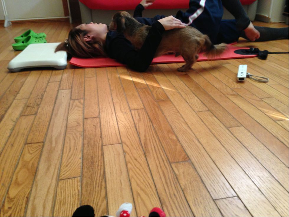コロンもマットに乗って一緒にやってるつもり(`艸´*)プブッ